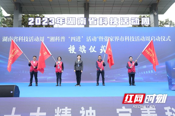 科普讲解员进课堂。今年的湘科普“四进”活动以“热爱科学 崇尚科学”为主题,由湖南省科技活动周组委会主办,湖南省科学技术信息研究所承办,以“4+N”的组织方式实施,即策划组织开展4次集中大型科普“四进”活动,同时根据各地需求和实际情况不定期开展N场次科普活动。具体活动形式包括组织省科普讲解大赛、省科学实验展演大赛优秀选手以及院士专家学者、科创名师、科普达人等,深入全省学校、企业、社区、农村,采取线上线下结合的形式,开展科普知识大讲堂、科创名师志愿行、科学实践展演秀、科技人才培训班、科技助企服务、健康科普下基层、科普读物大派送等科普活动。全年计划开展科普活动不少于100场次,覆盖全省14个市州,重点面向偏远山区,激发广大公民讲科学、爱科学、学科学、用科学的巨大热情,营造良好的科普氛围,提升全民科学素养,助力地方经济社会发展。活动启动式上,湖南中医药大学党委书记戴爱国,张家界市委常委、市人民政府副市长杨洪峰出席,近万名企业、学校师生代表参加。
